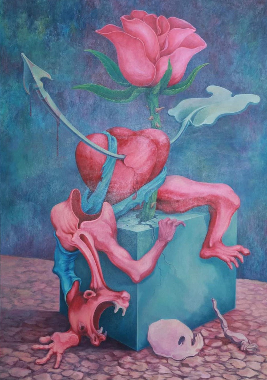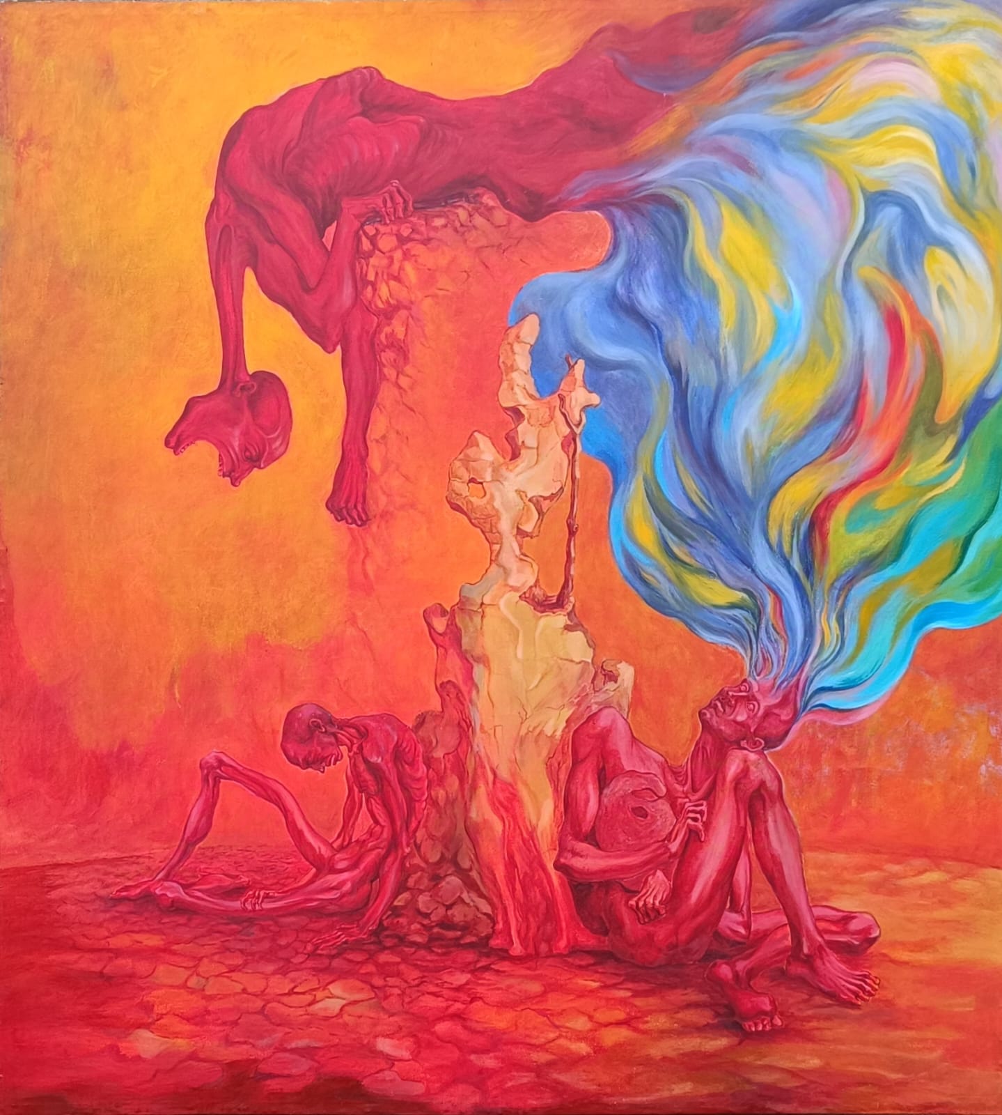 Vinith Chathuranga is the creator of the Collapsism Art movement, a philosophy born from Sri Lanka’s decades of social and political turbulence. Witnessing how cycles of crisis shape daily life, Vinith channels those realities into a visual language that questions surface appearances and exposes the unseen. His work merges natural realism, surrealistic and magical formalism, cubist tendencies, and abstract shapes, breaking traditional academic rules to form bold new compositions.