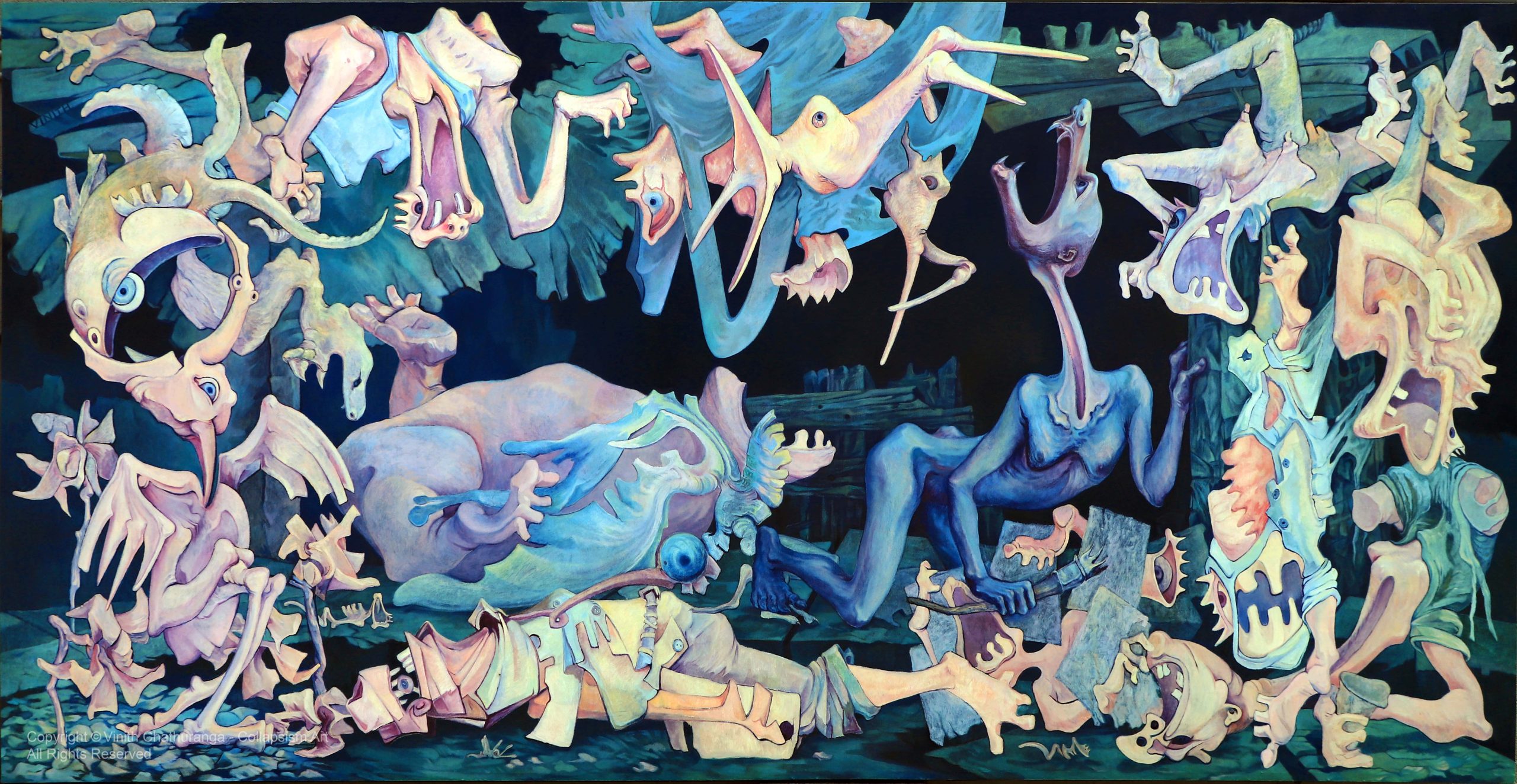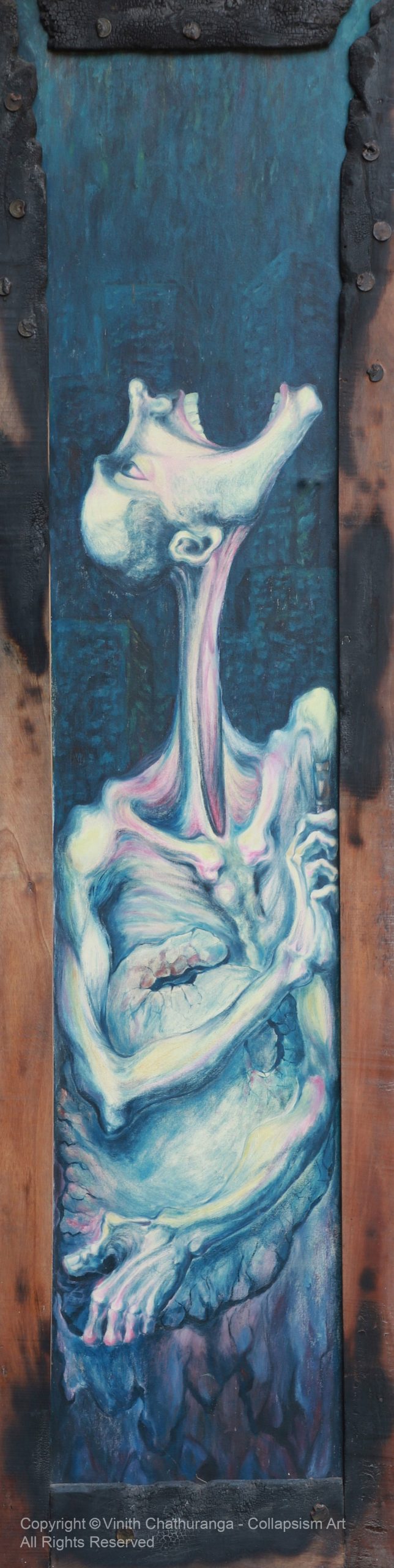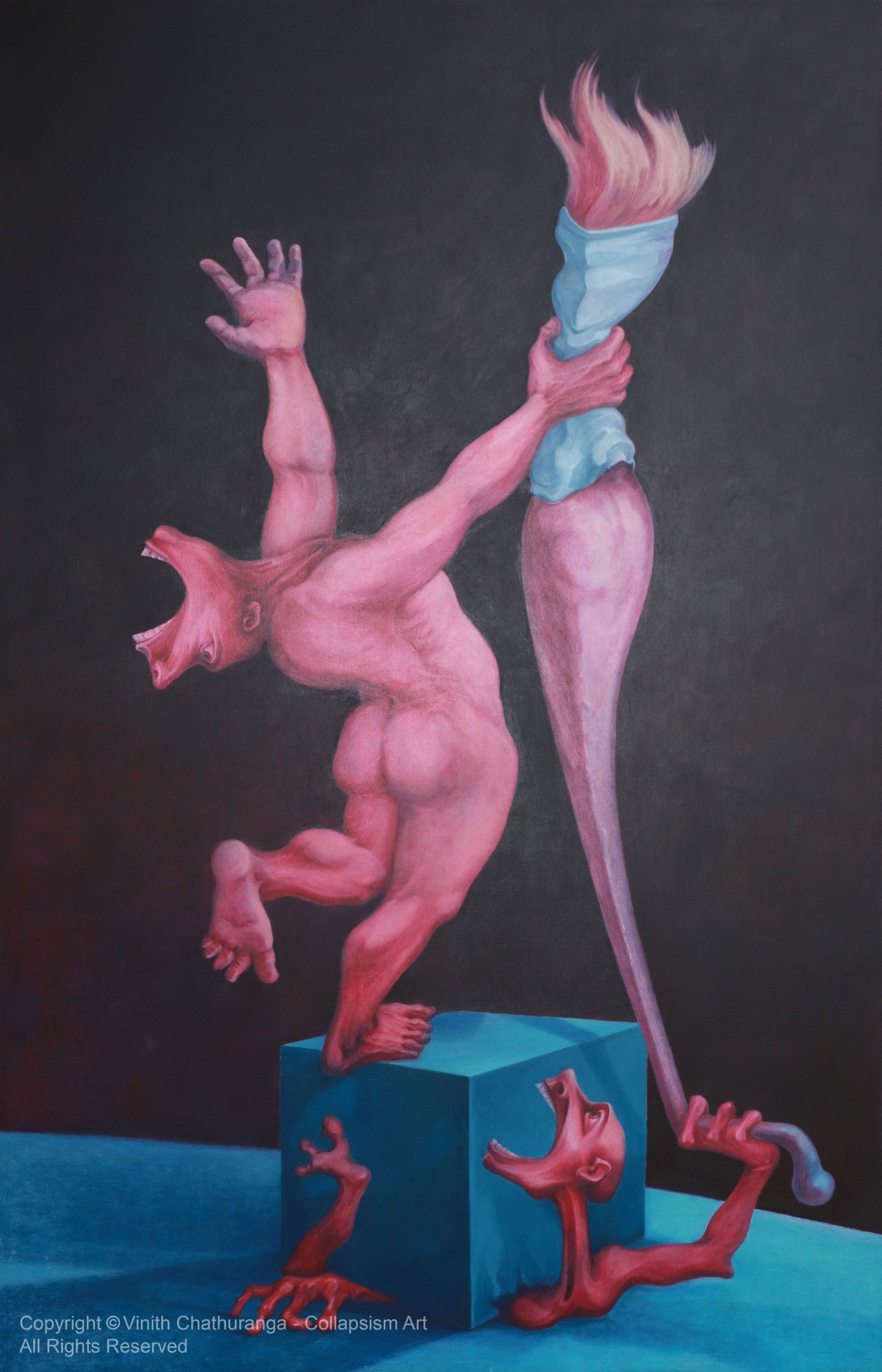 Vinith Chathuranga is a contemporary Post-Marxist critic and visual artist who created the Collapsism Art movement—a philosophy born from Sri Lanka’s decades of social and political turbulence. Witnessing how cycles of crisis shape daily life, Vinith channels those realities into a visual language that questions surface appearances and exposes the unseen. His work merges natural realism, surrealistic and magical formalism, cubist tendencies, and abstract shapes, breaking traditional academic rules to form bold new compositions.