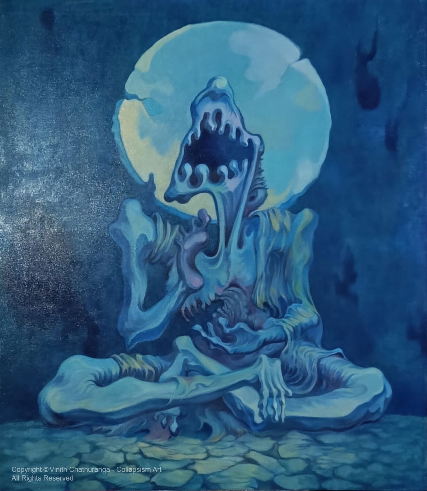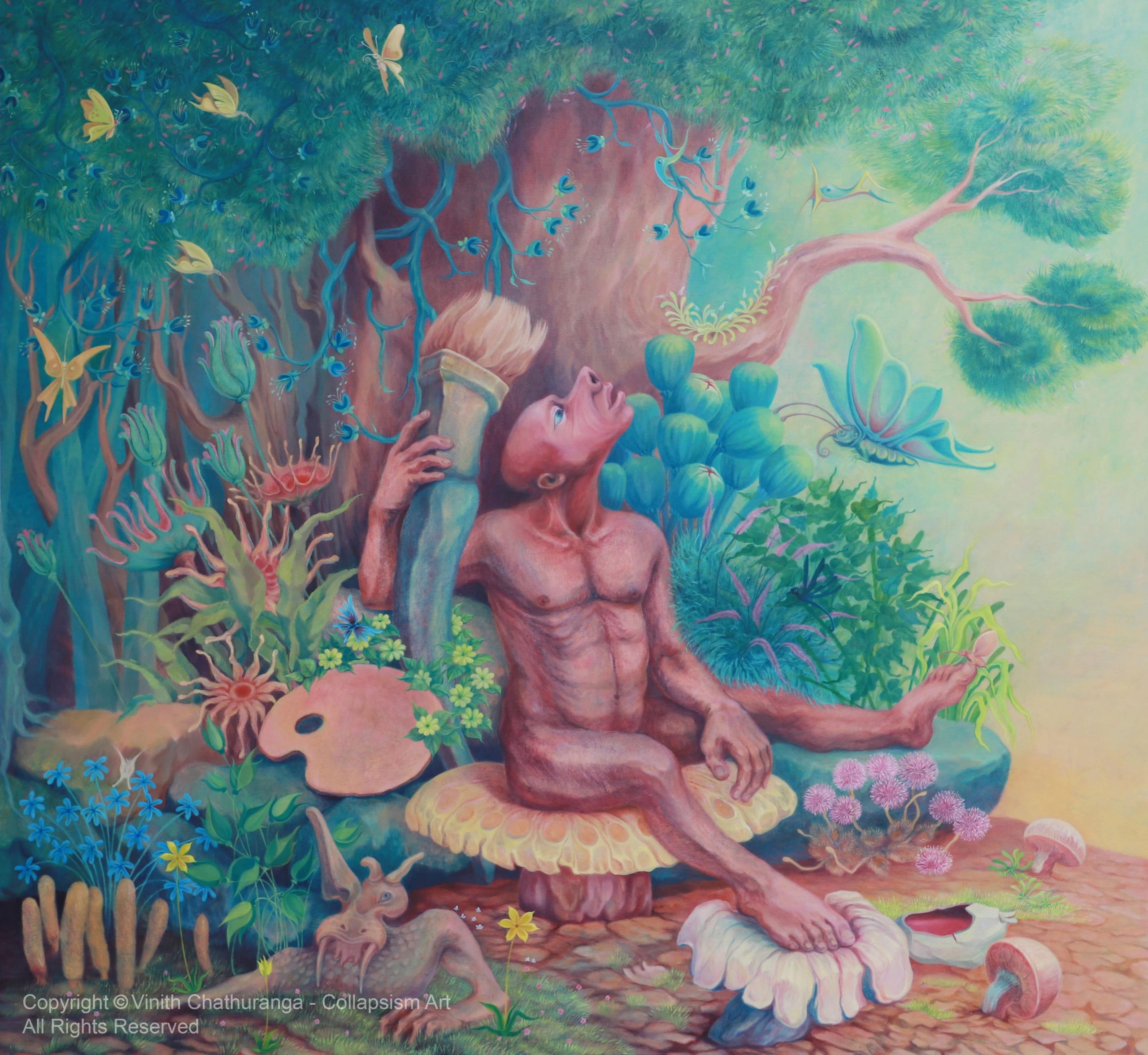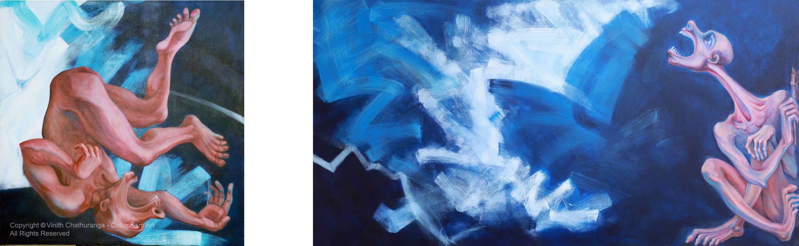 - Explorations of time and space introduce dynamic, multidimensional layers to the artwork. Elegance and fantasy combine refined aesthetics with imaginative, fantastical expression, making Collapsism both visually compelling and intellectually engaging. Together, these visual contexts establish the movement as a significant trend in contemporary Sri Lankan art.
